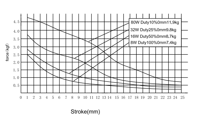 縱向:代表電磁鐵在對(duì)應(yīng)行程時(shí)的力量   單位為克(g