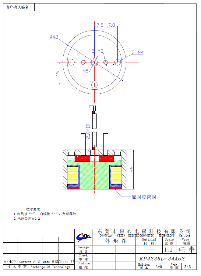 自保持吸盤電磁鐵KP4226,又稱為失電電磁鐵,就是電磁鐵在短電狀態(tài)下有磁性,通電消磁,然后再斷電有具有磁性的一款自保持吸盤電磁鐵。
