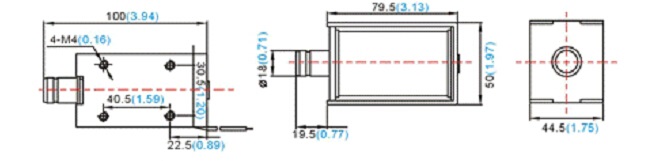 電磁鐵的側(cè)面各有4個M4的螺紋孔